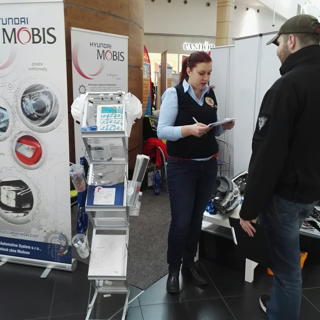 V našem stánku bylo možné zjistit aktuálně volné pracovní pozice, nabízené benefity, novinky o nově vznikající společnosti v Mošnově a případné další dotazy, které jsme zájemcům rádi zodpověděli.