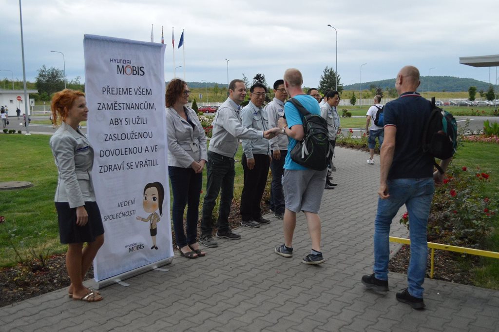 Dnes, na konci každé směny, se vedení společnosti před celozávodní dovolenou rozloučilo se zaměstnanci a popřálo jim hezkou dovolenou.