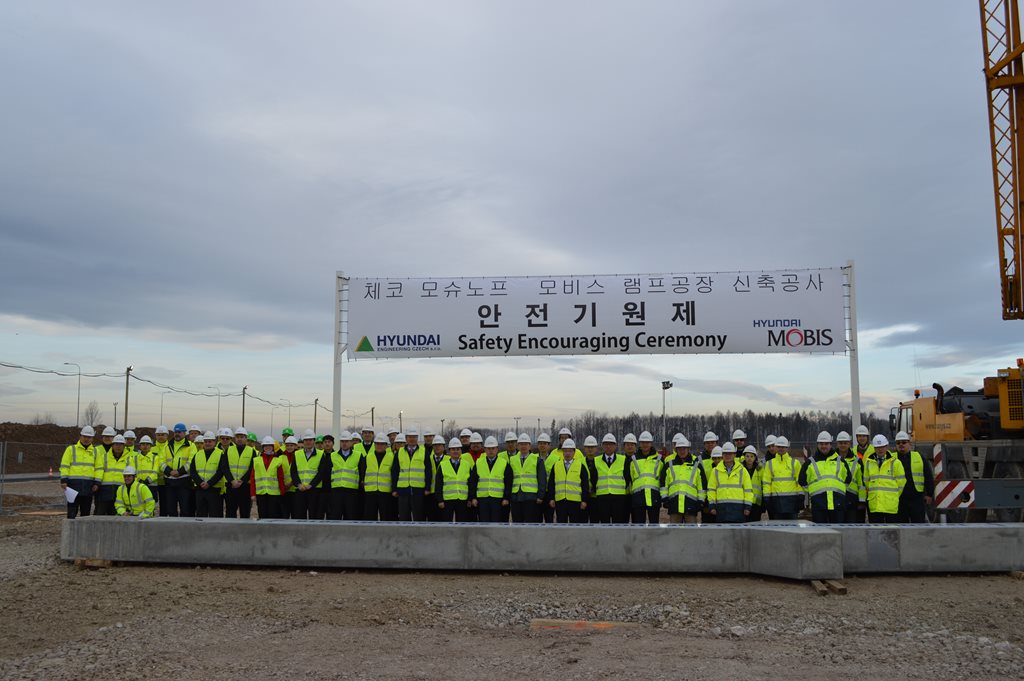On Wednesday 27th February, 2016 with the first column erection began construction of a plant for the lamp production in Mošnov. Traditional ceremony was attended by the company's management, representatives of Korean companies from our region and representatives of construction companies. The Hall with an area of nearly 45 thousand. m2 should be completed by Winter 2016.
