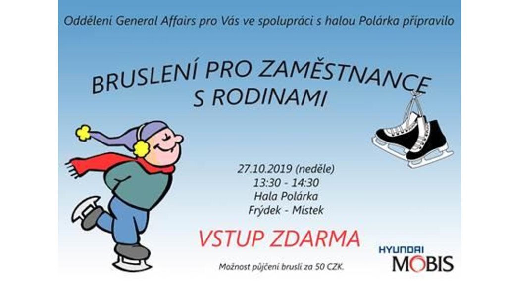 Pro naše zaměstnance a jejich rodinné příslušníky jsme připravili sportovní aktivitu – "Bruslení v Hale Polárka" ve Frýdku-Místku dne 27.10.2019 ve 13:30.