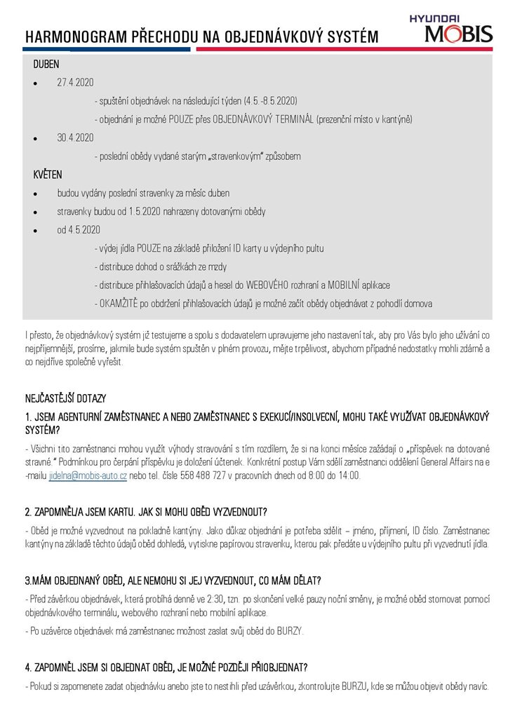 Změna benefitu na podporu stravování od 1.5.2020. Více informací naleznete v příloze.