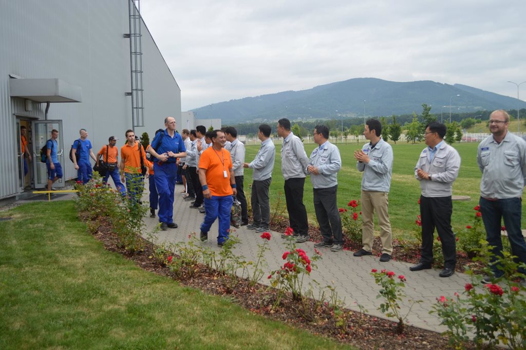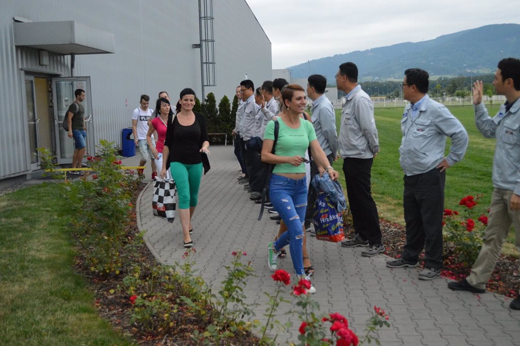 Dnes, na konci každé směny, se vedení společnosti před celozávodní dovolenou rozloučilo se zaměstnanci a popřálo jim hezkou dovolenou.